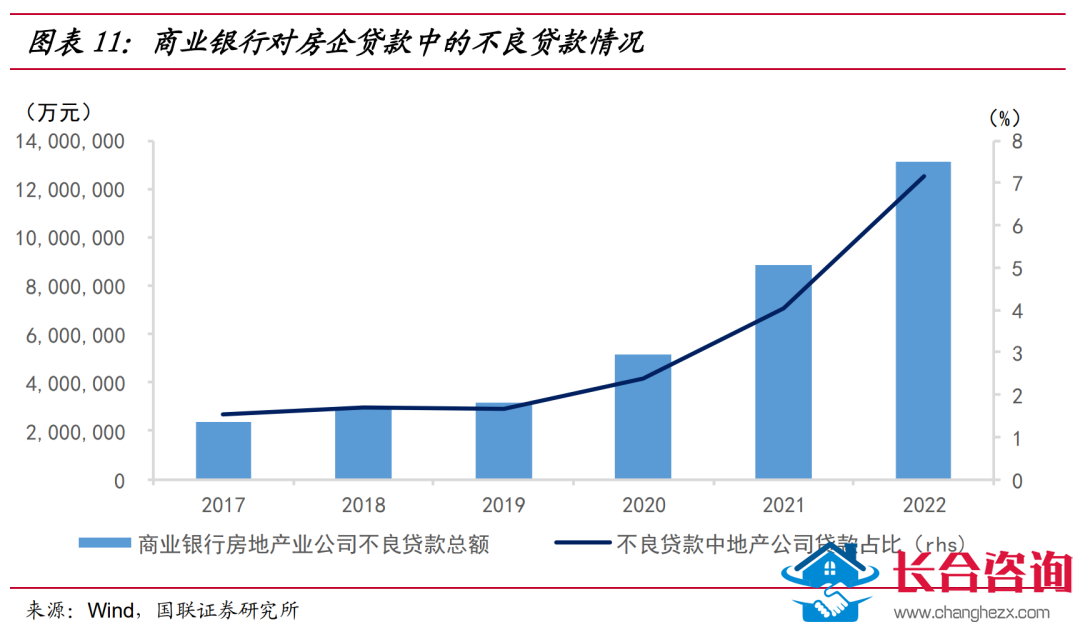 一方面,一些全国性的民营房企已经出现债务违约的情况;另一方面,房价下跌销售不畅导致一些地方性地产公司暴雷。根据银行年报显示,开发贷款相关的坏账规模也有所上升。