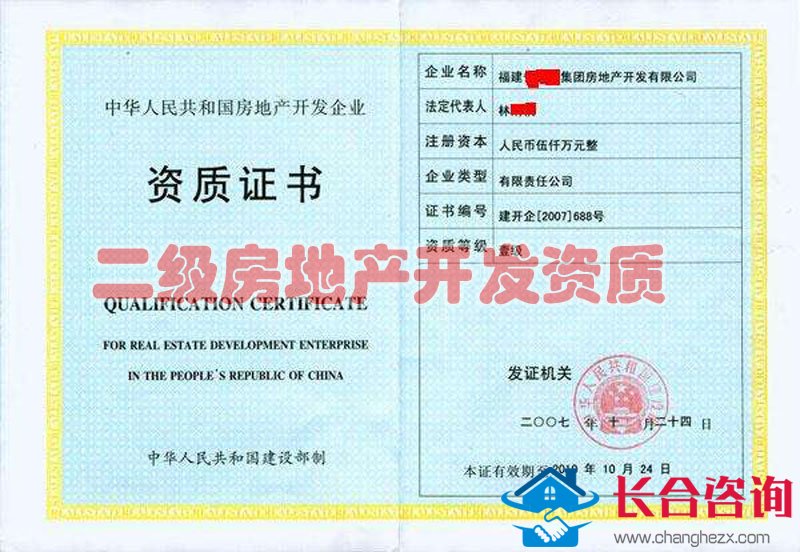 二级房地产开发资质证书